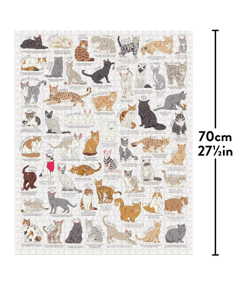 NEW! Recommended for age 10 through adult, this 1000-piece jigsaw puzzle features illustrations of 54 favorite felines. Perfect for any cat lover, the finished puzzle can be made into wall art with a standard 22″ x 28″ frame (frame not included). Packaged in an easy-to-store 12″ x 4.6″ tube with a helpful poster guide.
